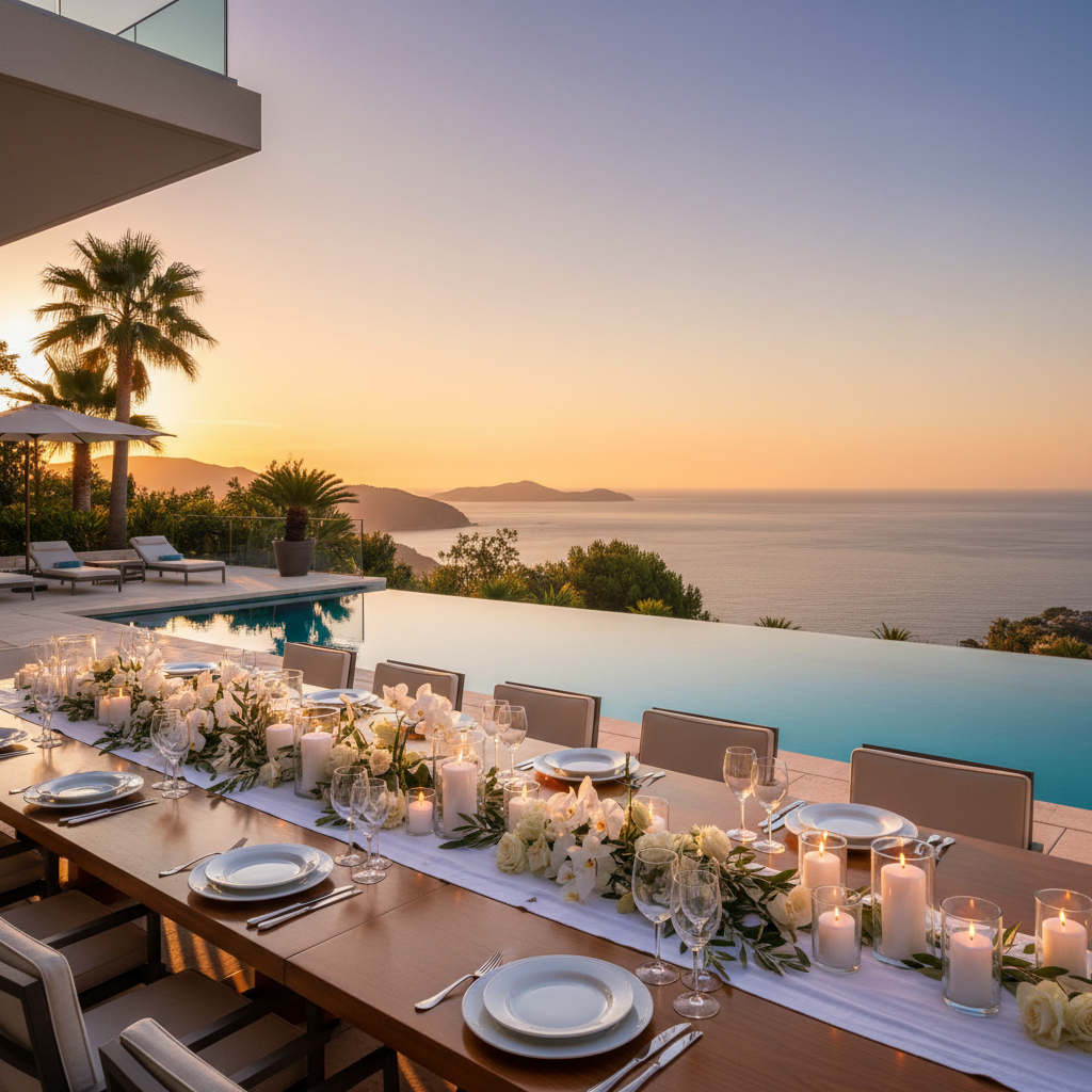 New Year's Eve in a villa is one of the most underrated ways to mark the occasion. You're not queuing for a taxi at 2am, you're not paying hotel restaurant prices for a set menu, and you're not sharing the moment with 400 strangers. You can have a caterer in, or keep it entirely private. Both work.